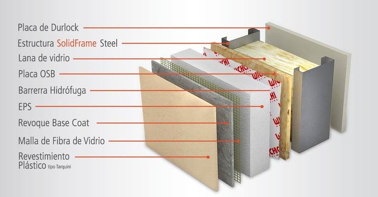 El Steel Frame se basa en una estructura de acero galvanizado de alta precisión, combinada con capas técnicas que optimizan el rendimiento de la construcción: